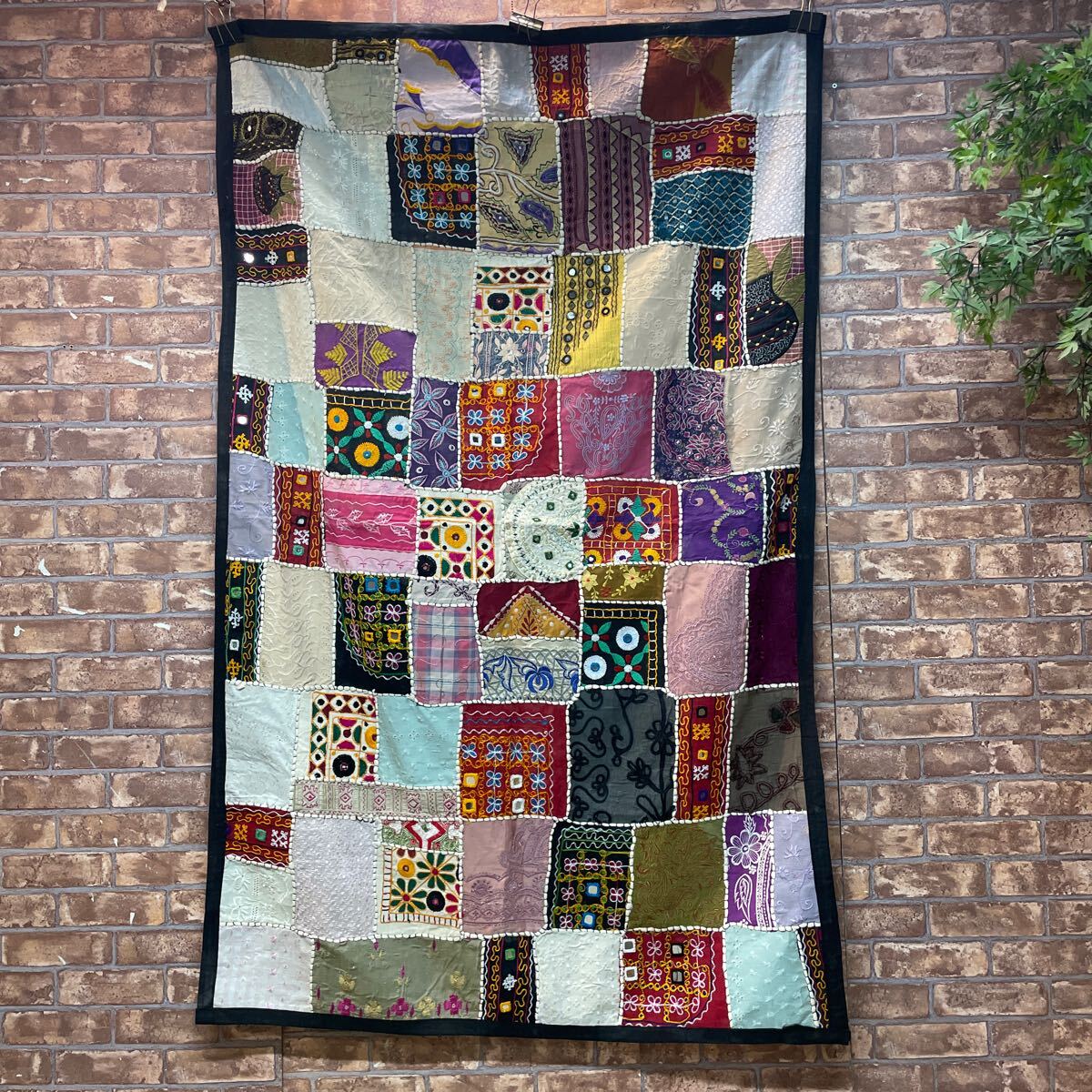 > G2818 【エスニック 布】 パッチワーク ミラーワーク 民族 工芸品 ラグ マルチカバー 刺繍 中古 保管品 現状品