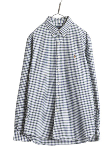 > ラルフローレン ギンガム チェック 長袖 ボタンダウン シャツ メンズ L 古着 ポロ BD 長袖シャツ コットン オックスフォード ワンポイント