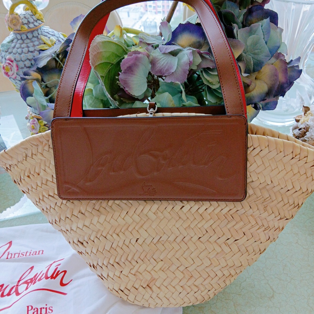 - クリスチャンルブタン レザー カゴバッグ ショルダーバッグ 未使用 ロゴ 赤 未使用