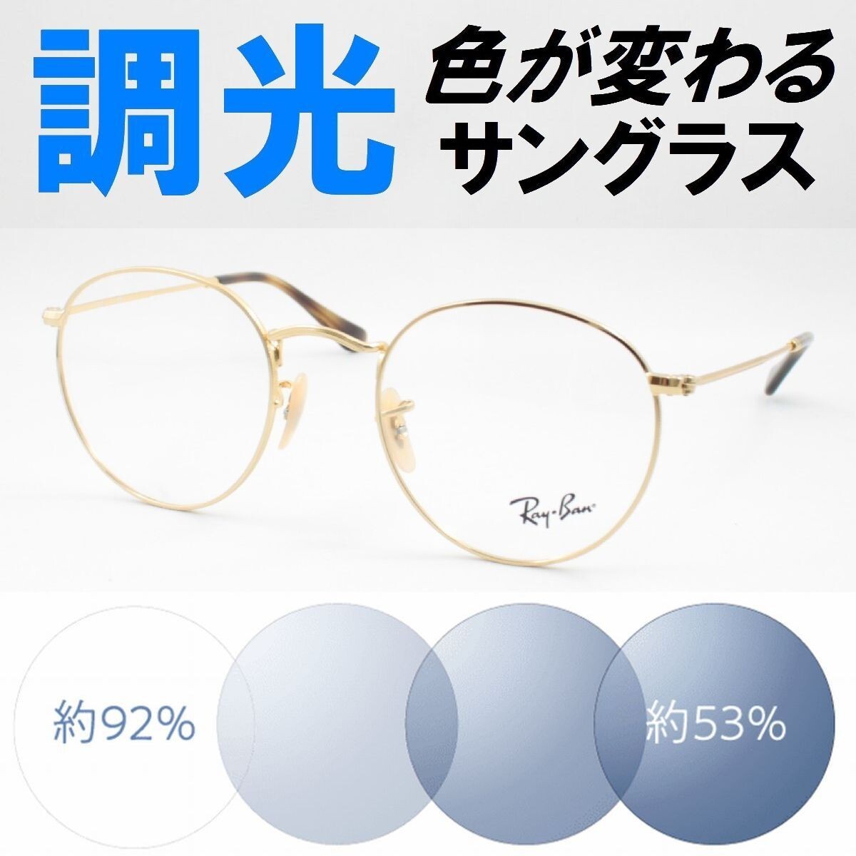 - Ray-Ban レイバン RX3447V-2500 50 ライトブルー調光サングラス 度なし 伊達メガネ UVカット ラウンドメタル ボストン 丸メガネ ラウンド
