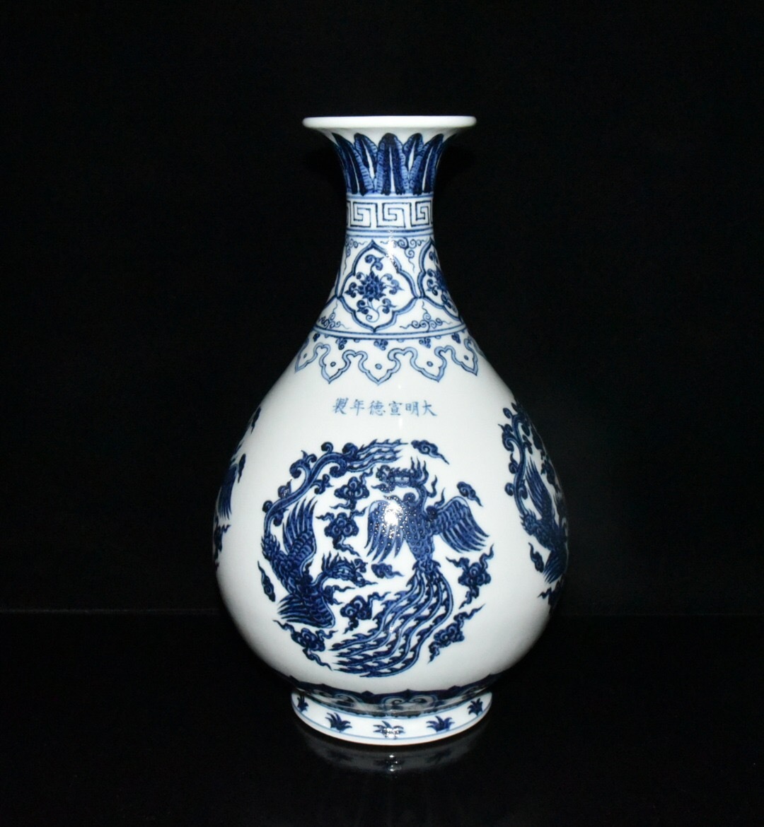 > 『館蔵珍品 明 宣德年製款 古陶瓷品 青花 鳳紋 玉壺春瓶 陶藝』稀少珍蔵品 古賞物 貴重物品 収蔵品 中国古美術 時代物 古董品