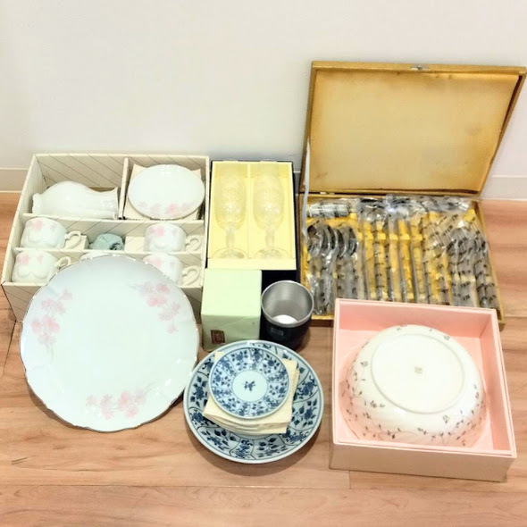 - 【食器】まとめ たち吉 ボヘミアングラス 幸山窯 タンブラー カトラリーセット 大皿 ティーカップセット 全て箱付き