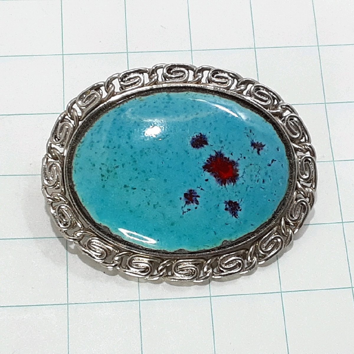 - 送料無料)ビンテージ☆ターコイズ風☆アンティーク ブローチ A30987