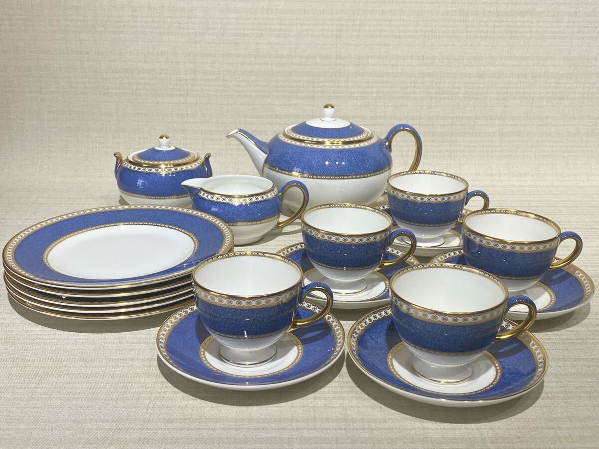 > ウェッジウッド ユーランダーパウダーブルー ティーセット13点 ポット シュガー クリーマー カップ&ソーサー(5客) プレート(5枚)