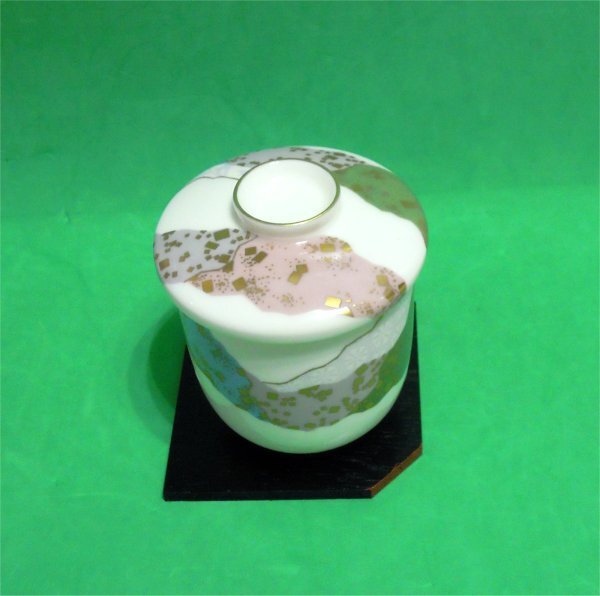 - 翔山窯 蒸茶碗 ちぎり絵 五客揃 7x9cm 未使用