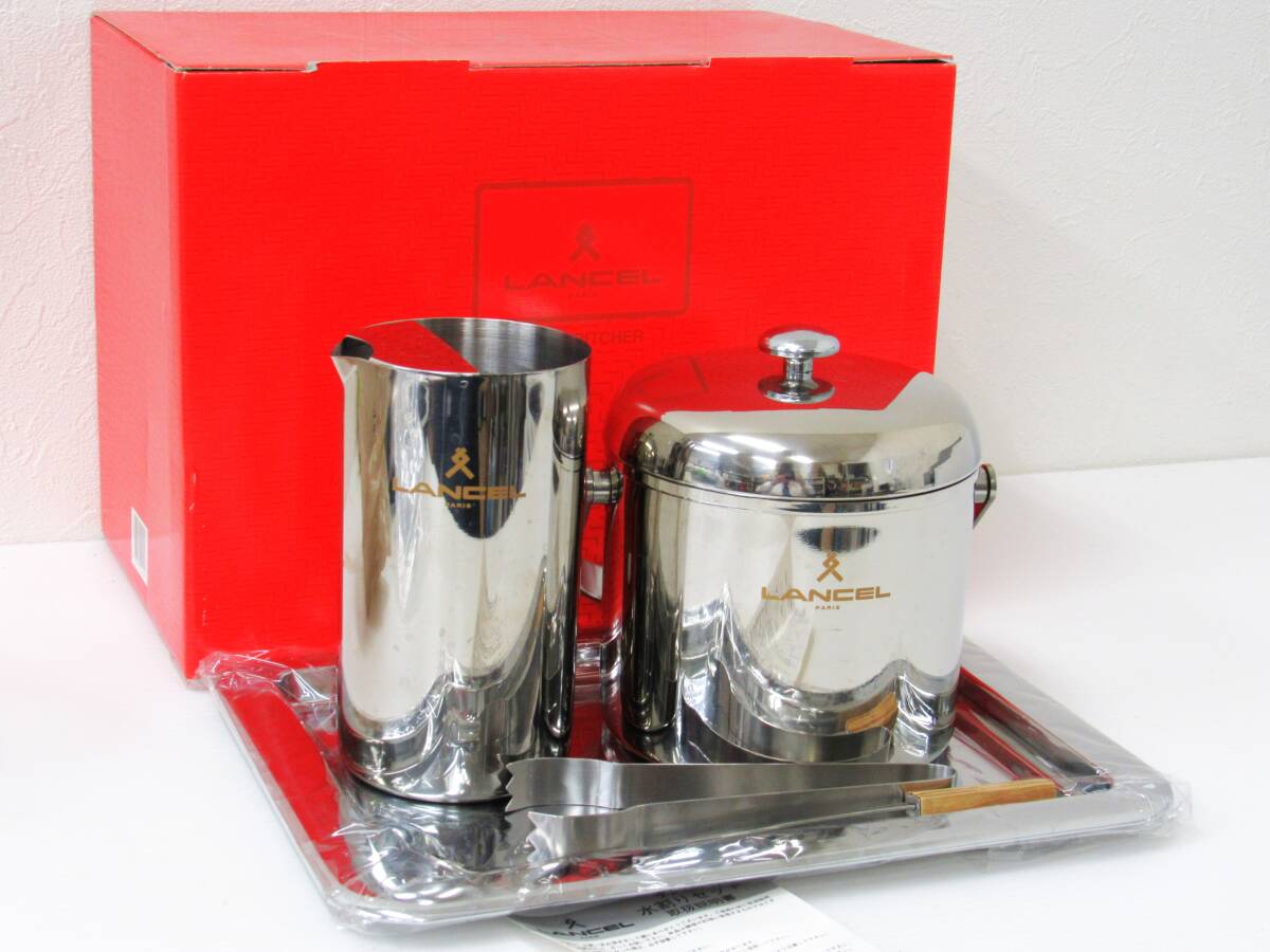 - ランセル LANCEL 水割り4点セット アイスペール ウォーターピッチャー トング トレー 18-8ステンレススチール 中古