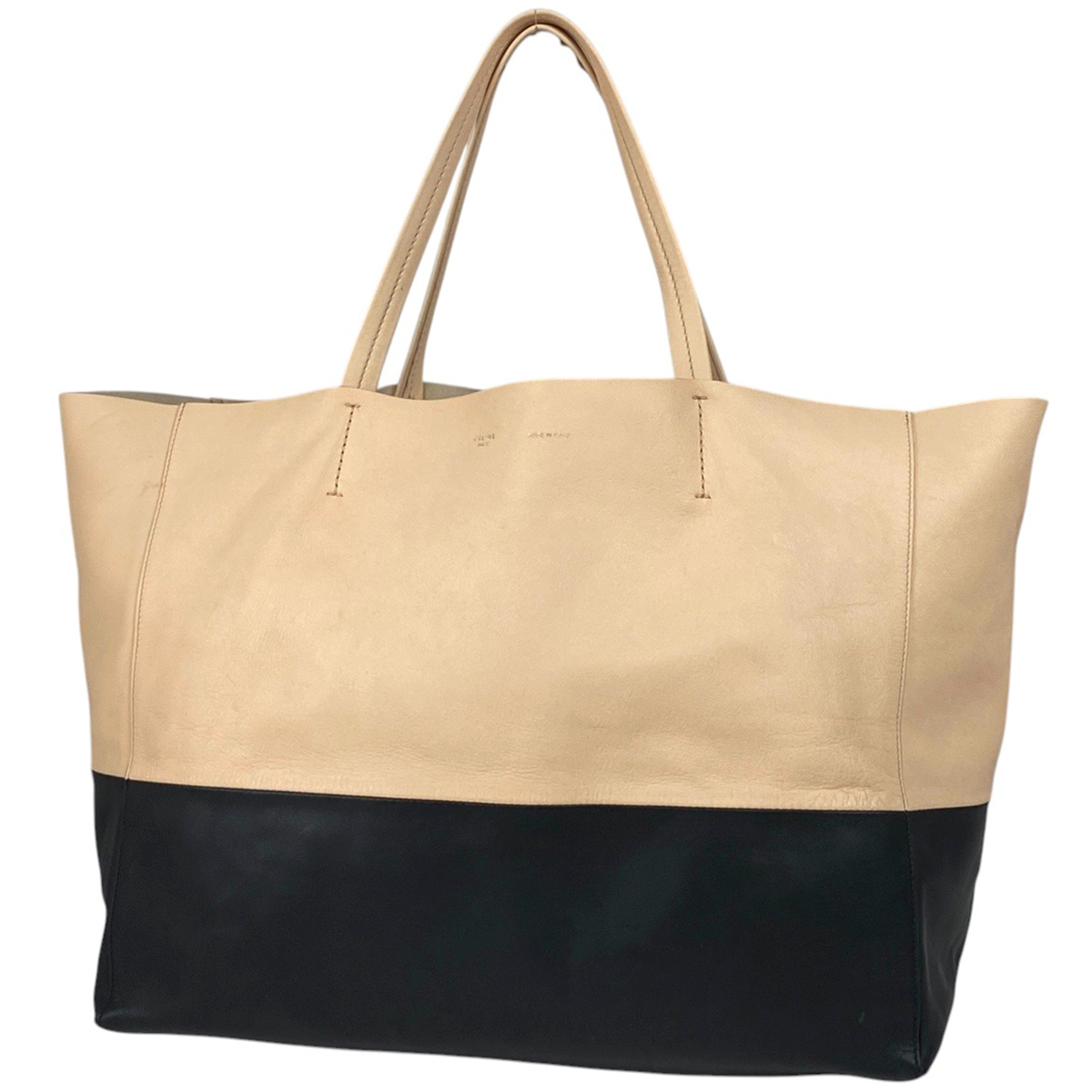 - 【在庫一掃】 セリーヌ バーティカル カバ トートバッグ バイカラー ショルダーバッグ レザー ベージュ ブラック 【中古】