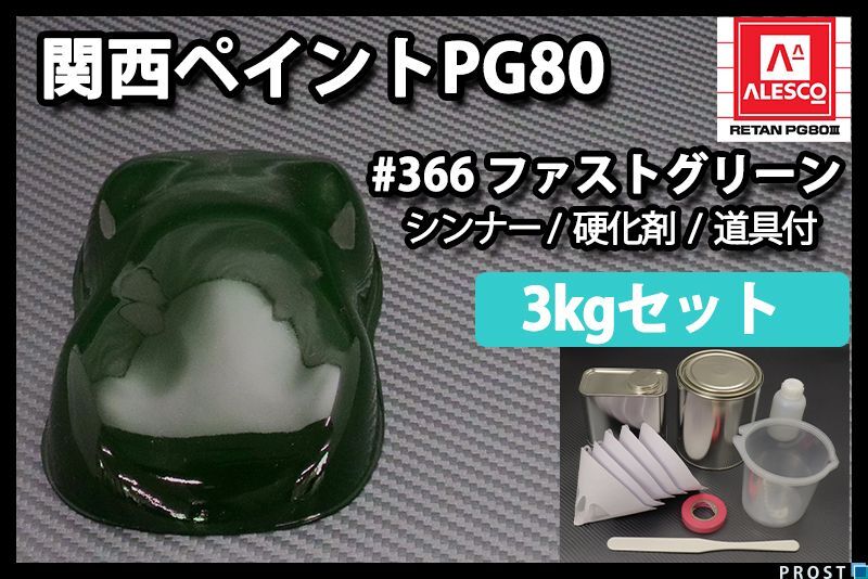 - 関西ペイント PG80 原色 366 ファストグリーン 3kgセット/2液 ウレタン 塗料 Z26