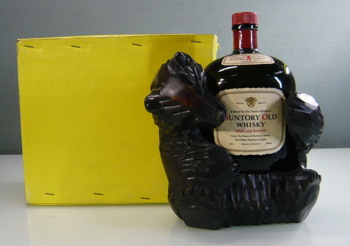 - ウイスキーホルダー 木彫り熊 未使用保管品 一刀彫 置物 オブジェ 昭和レトロアンティーク 当時物 ヒグマ