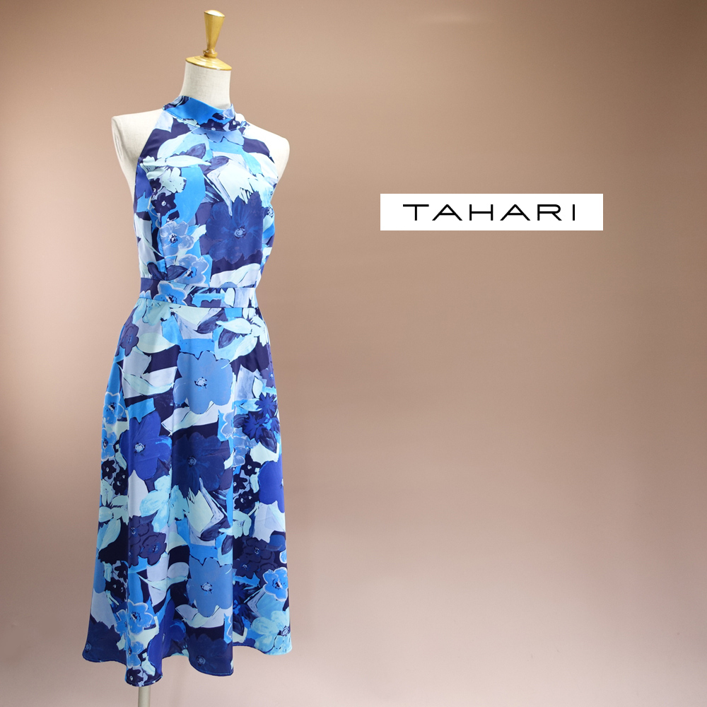 - 送料185円 新品エリータハリ 10P/15号 青 紺 花柄 ホルターネック ロング ワンピース フレアスカート リゾート ドレス 輝34H1802