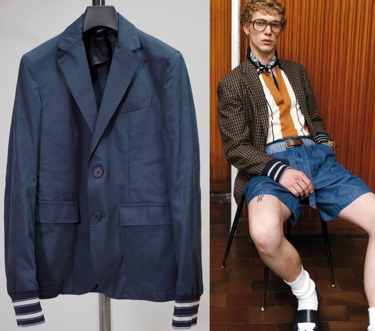 > 未使用品 ANDREA POMPILIO アンドレアポンピリオ 17SS袖リブ切り替えジャケット46紺 Italy製