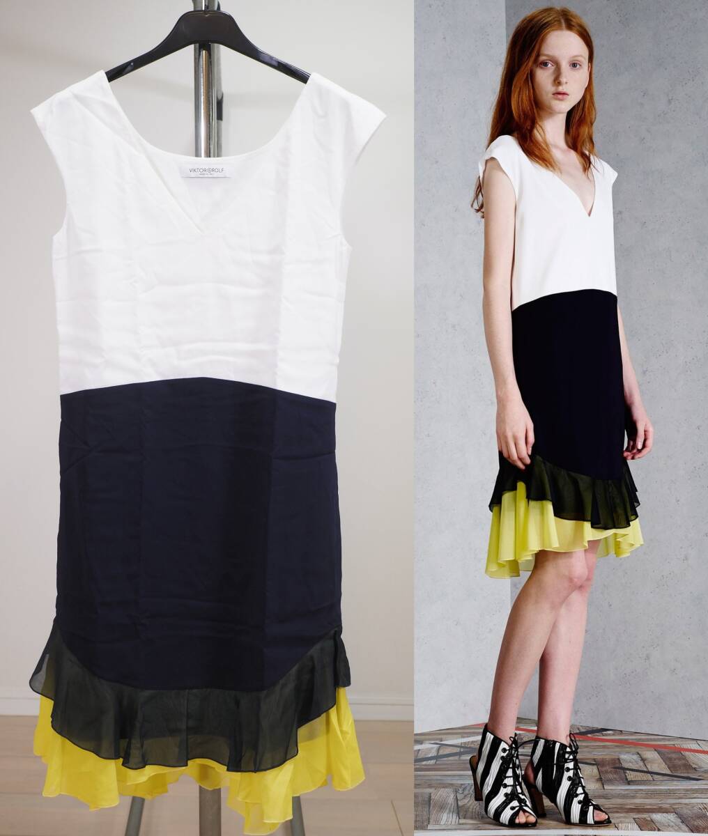- VIKTOR&ROLF ヴィクター&ロルフ 15SSフリル切り替えフレンチスリーブワンピース38 Italy製 V&R
