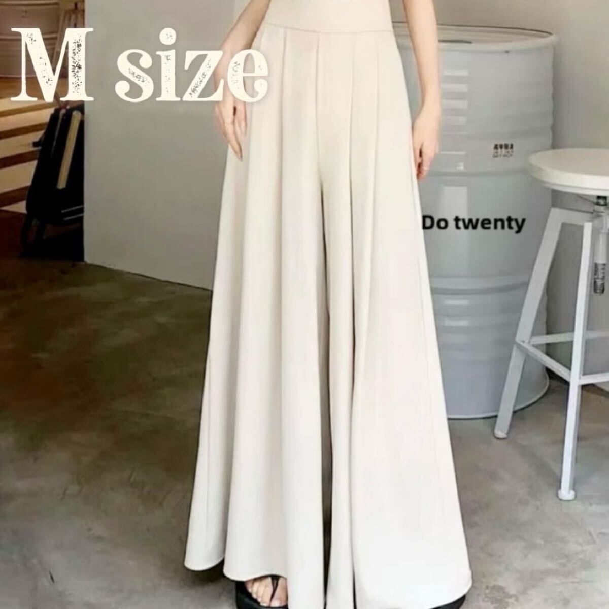 - ハイウエスト ワイドパンツ 楽ちん フレア Aライン ロング 白 M