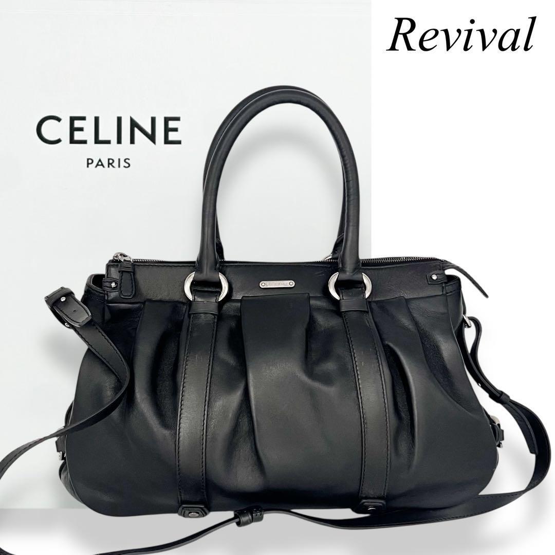 - 【美品】セリーヌ レザー マカダム金具 2WAY ショルダーバッグ 黒 351