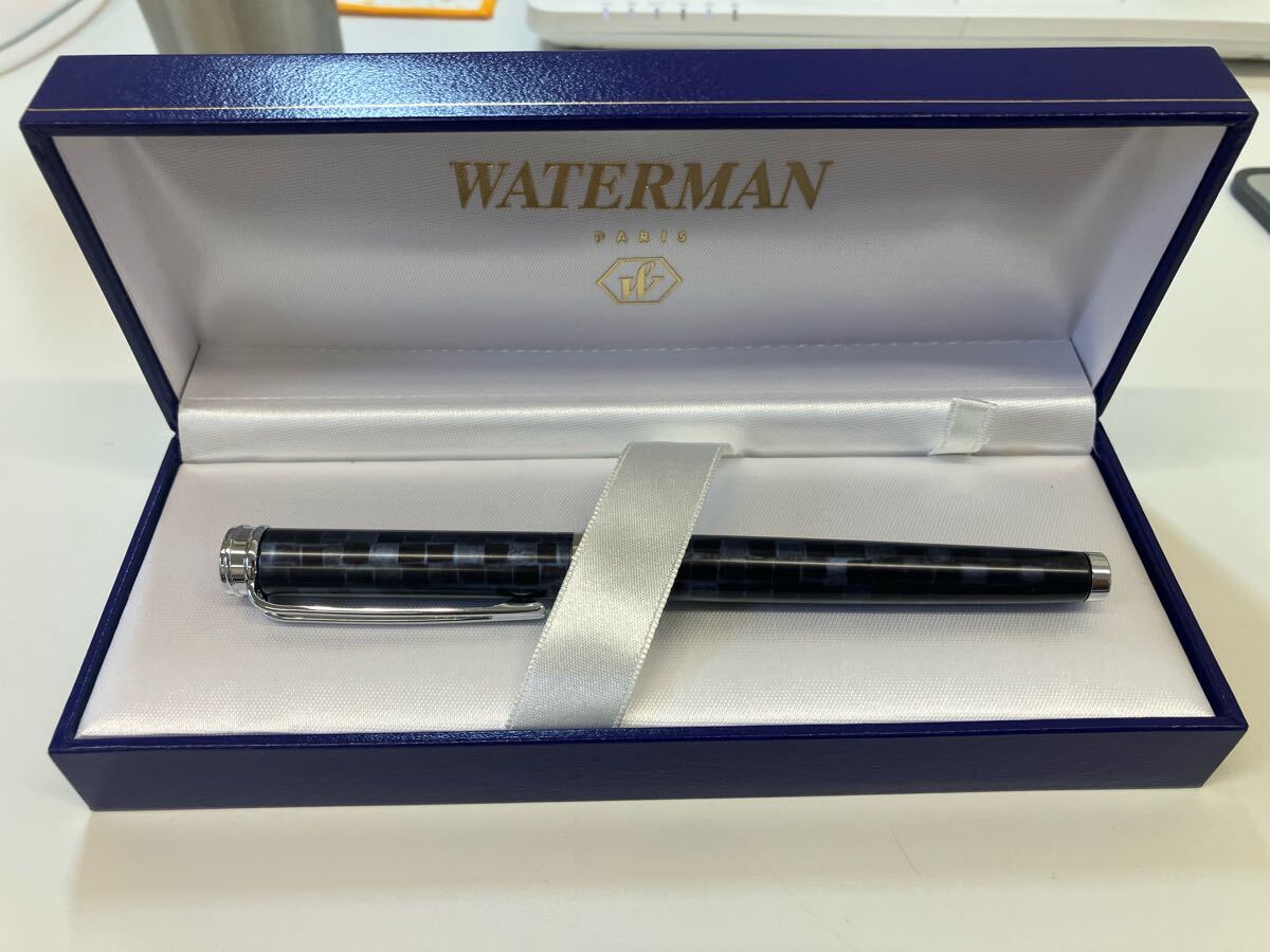 > 【未使用品】WATERMAN ウォーターマン エキスパート 万年筆 ブルーチェック柄 M中字 フランス製 箱・保証書付