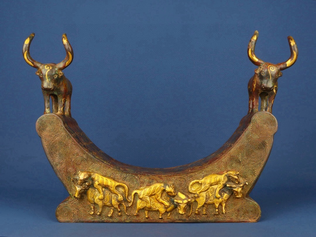 - 蔵友旧蔵出 西周 青銅作 錯金 銘文 雙牛枕頭 希少珍品 貴重品 置物 古賞物 中国古玩 中国古美術品 館蔵品