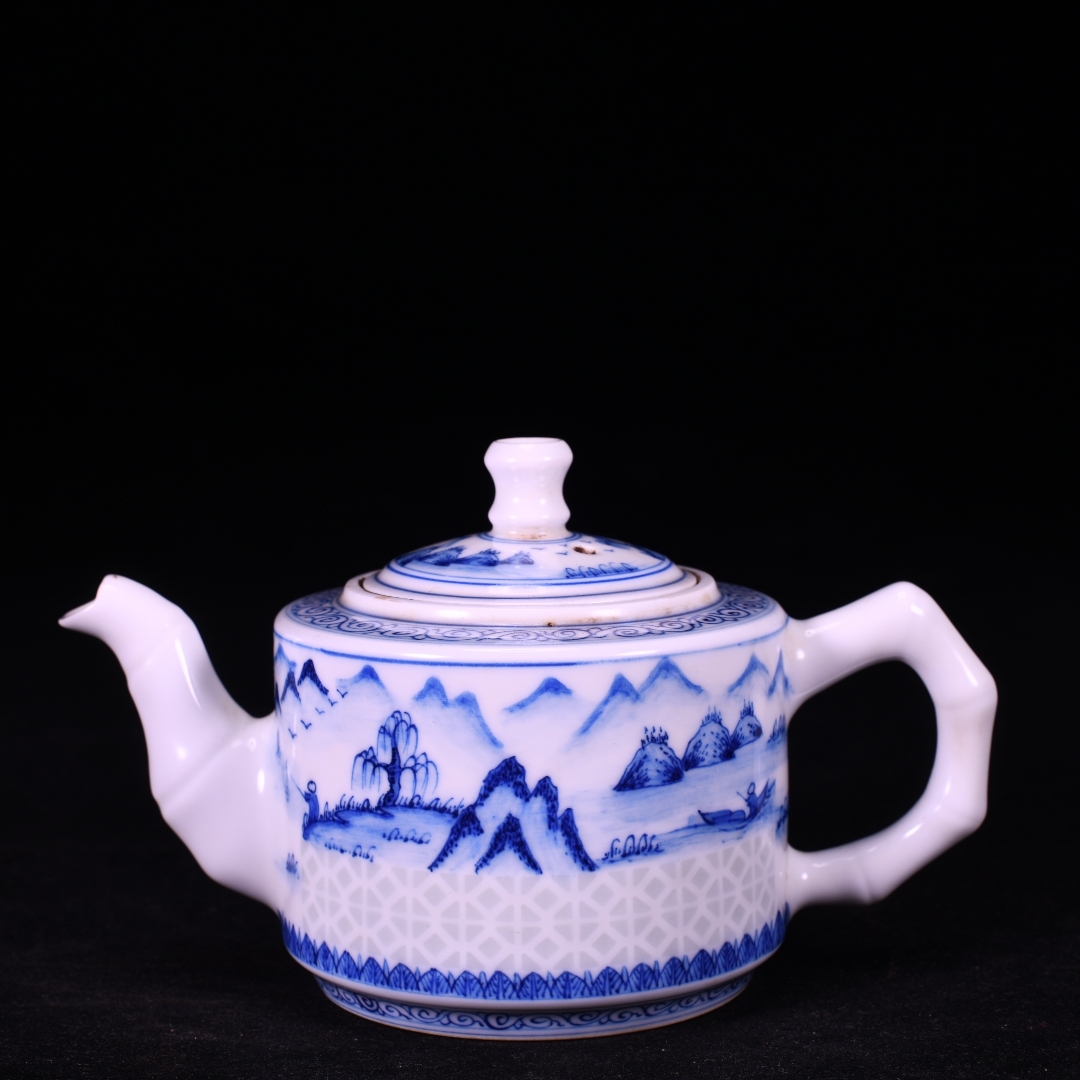 - 「清国 康熙年制製 古陶磁器 青花 翠毛藍釉 山水文 玲瓏磁 唐磁 茶壺 急須」時代物 古董品 骨董 旧家蔵出し 唐物 中国古玩 古美術品