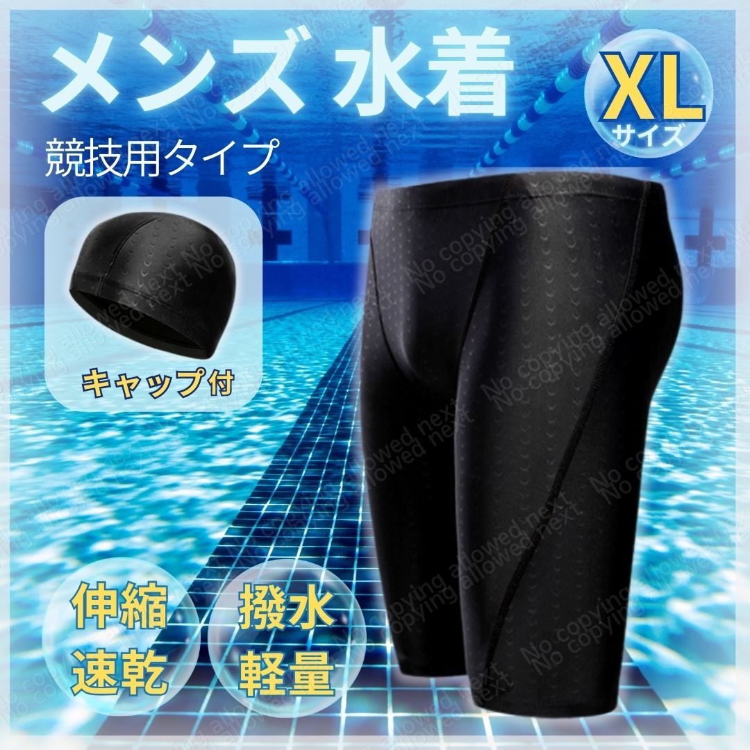 - スイミングパンツ XLサイズ メンズ 水着 スイムウェア ブラック 速乾 競泳用タイプ キャップ付 ジム用水着 プール用水着 耐久性素材