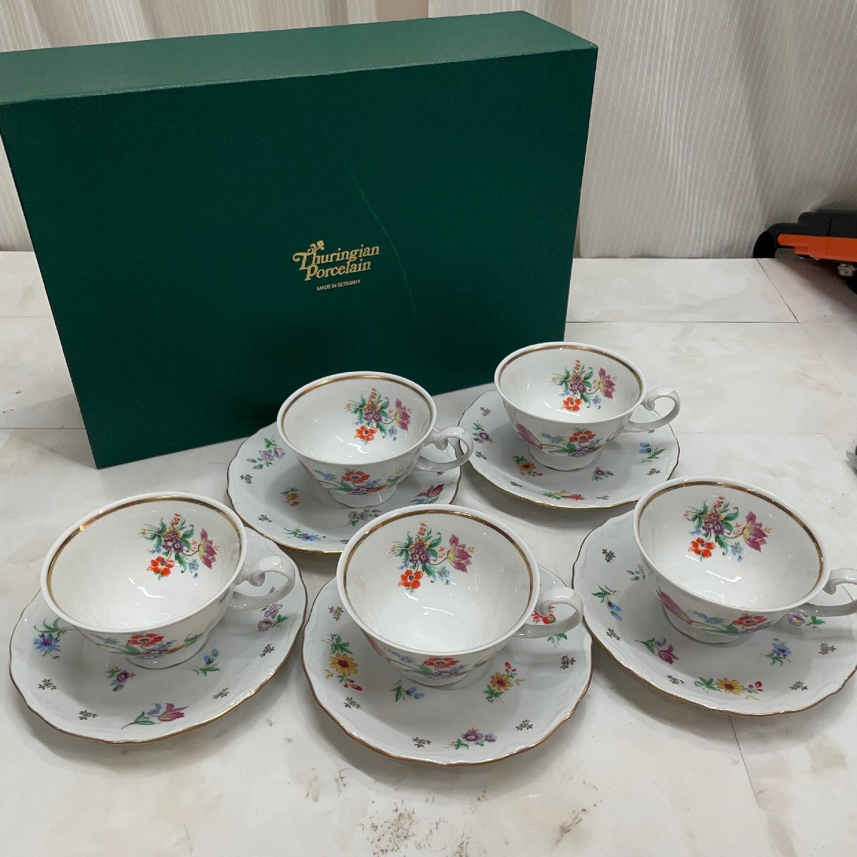 > ♭M♭ 新品 チューリンゲンポーセリン カップ&ソーサー 洋食器 陶器 5客 Thuringian Porcelain ♭J-250729