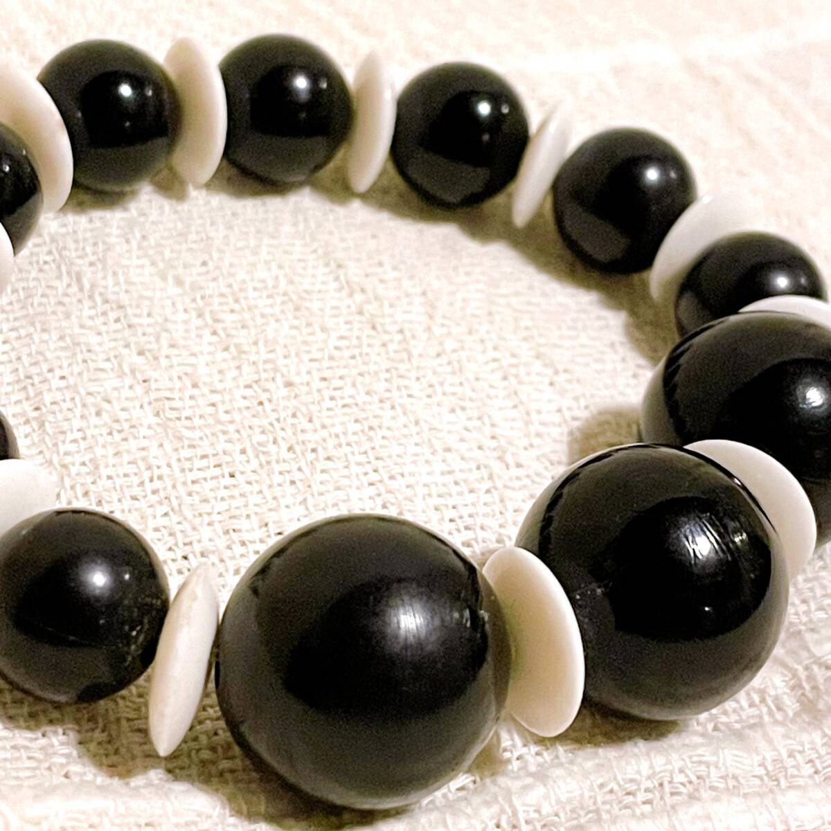 > ヴィンテージ ビーズ ブレスレット 白黒 ビンテージ バングル USA アンティーク レトロ 50's 60's ベークライト サイズフリー ルーサイト