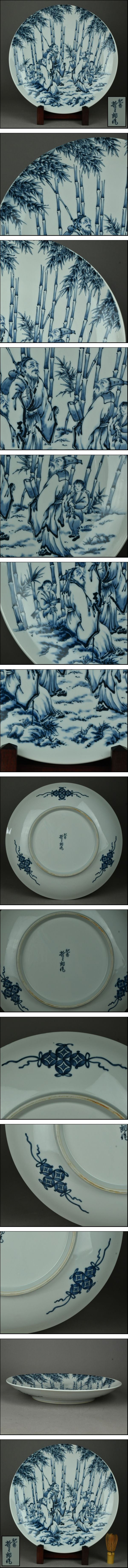 > 【ACT】肥前【哲三郎 作】染付 竹林賢人風景図 大皿 飾皿 床置 美術品 幅40.5cm A7-717AM