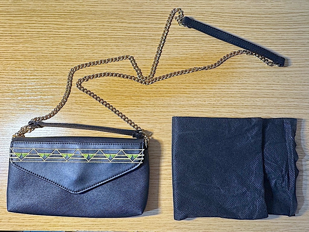 > クレ・ド・ポー ボーテ ノベルティ チェーンショルダーバッグ 黒×金×緑 合皮×刺繍