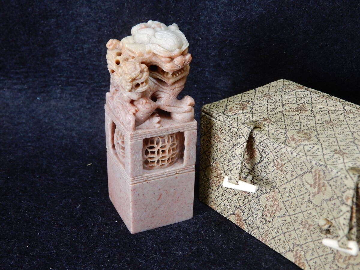 - 印材 獅子印材 透かし彫り 4cm角 印章 美材 篆刻 書道 水墨画