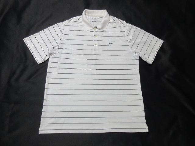 > W-192★ナイキゴルフ・DRI-FIT♪371120/白色/ボーダー/半袖ポロシャツ(XL)★