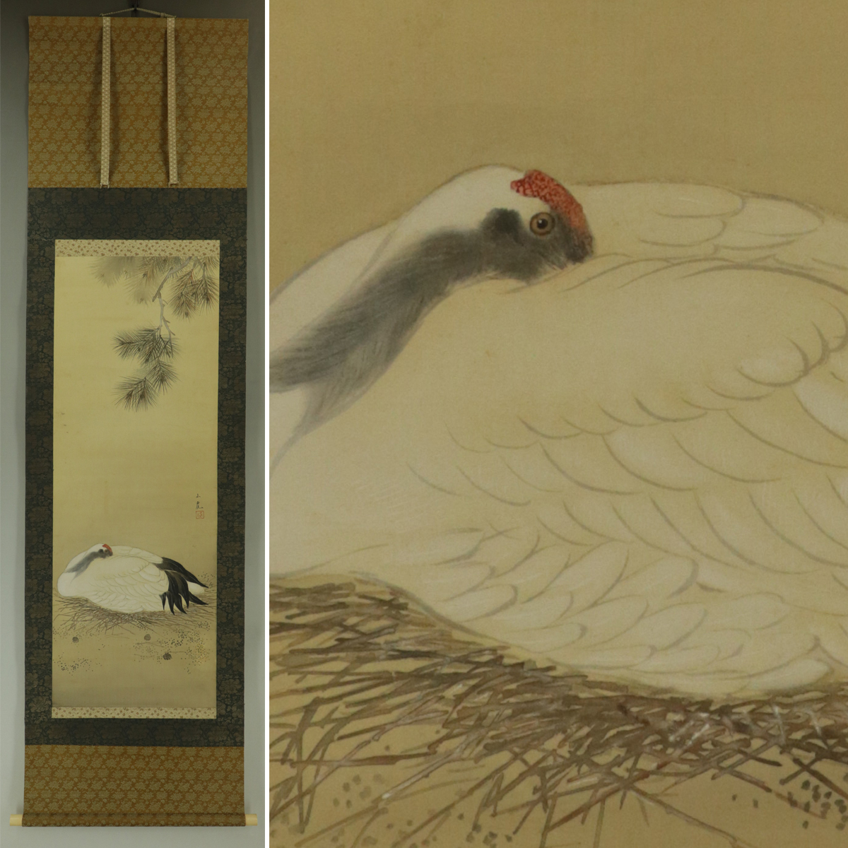 - 【真作】川崎小虎【千年長寿】◆絹本◆共箱◆掛軸 s06089