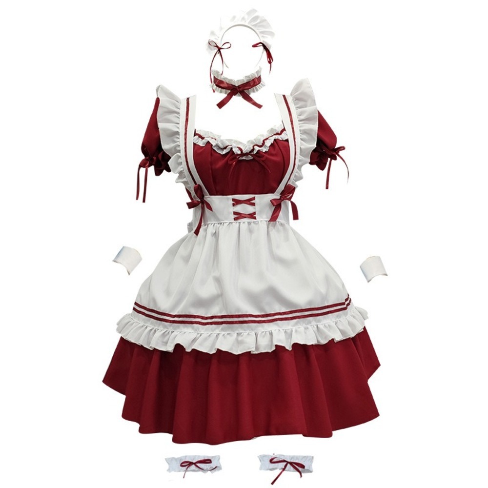 > ☆ ワインレッド ☆ Lサイズ ☆ メイド服 コスプレ ロリータ メイド服 コスプレ ロリータ 半袖 ドレス ワンピース 衣装 コスチューム 仮装