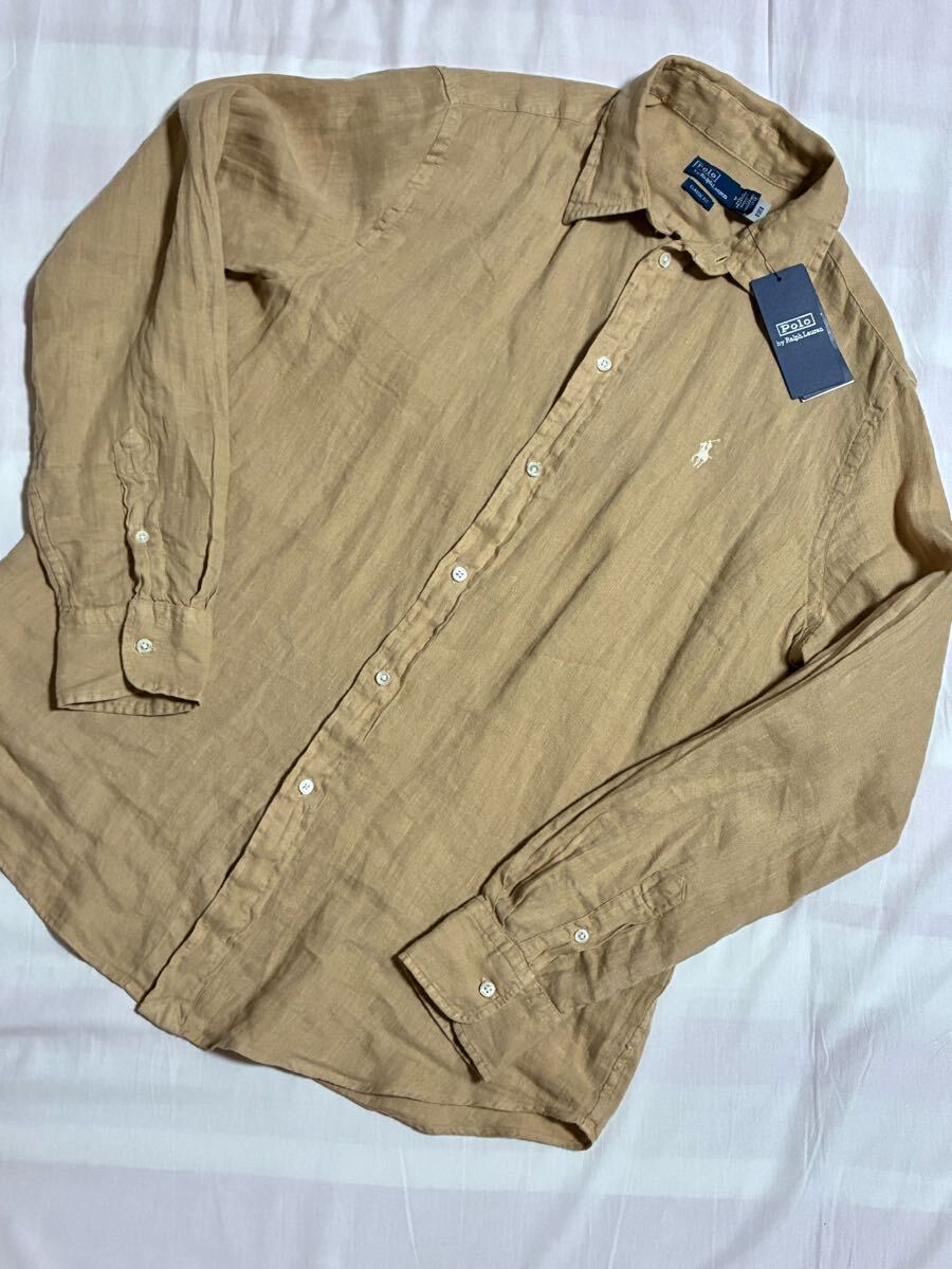 - 新品未使用!ポロラルフローレンpolo Ralph Lauren女性長袖麻100%シャツ、アメリカMサイズ、ベージュ系