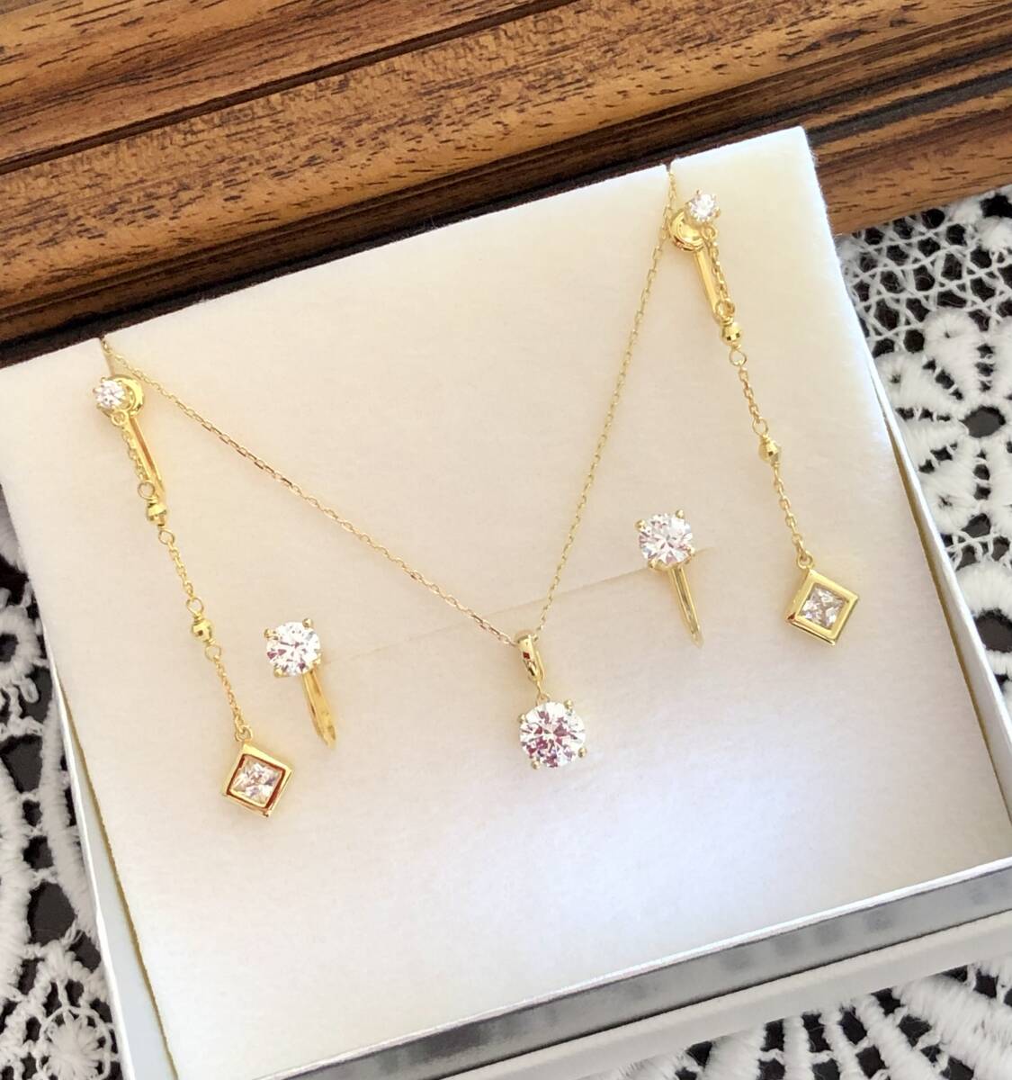 - 美品未使用ペンダントネックレス・イヤリング4点セット★GSTVテレビショッピング ゴールドカラー 大粒ホワイトジルコン★SILVER 925等刻印