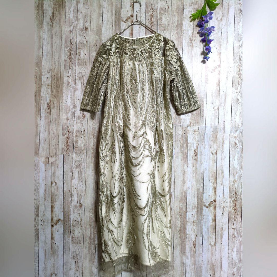 - 【haremode】パーティードレス☆背中リボン☆ツタ柄☆チュール☆刺繍☆ハレモード☆ボタニカル☆ワンピース☆オケージョン☆ピスタチオ