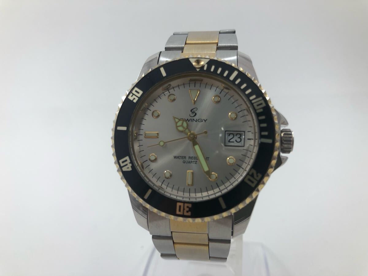- 【稼働品!!】スインギー・サブマリーナ風ウォッチ・デイト・コンビカラー・コマ付[SWINGY QUARTZ]クォーツ式メンズ腕時計【中古品】