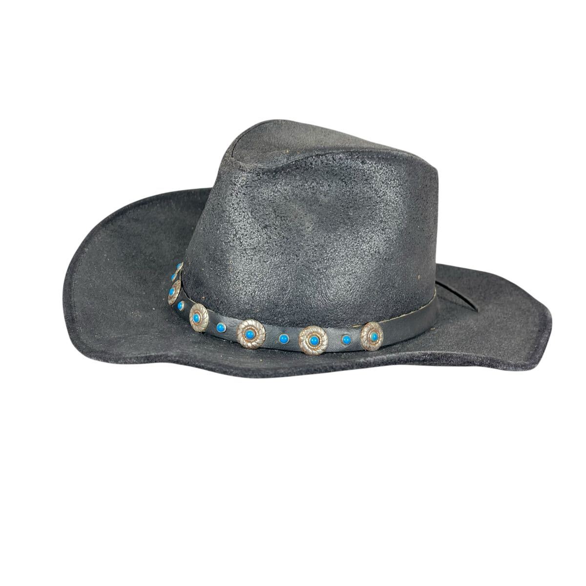 - JT1578cc HENSCHEL ヘンシェル ハット レザー ブラック ターコイズ ウエスタンハット カーボーイハット テンガロンハット Mサイズ