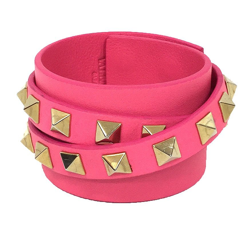 - Valentino Garavani ヴァレンティノ・ガラヴァーニ Rockstud ロックスタッズ レザー ブレスレット ピンク 未使用 aq9902