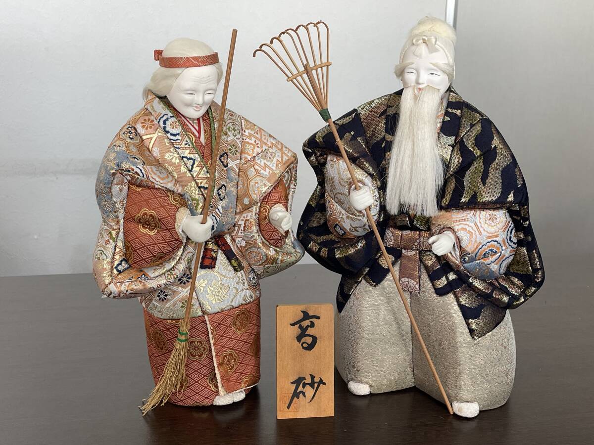 - ★【木目込人形 日本人形 和風インテリア 置物 2体セット】木目込み人形 高砂 (大) 正絹 長寿 夫婦円満★全高:約31cm
