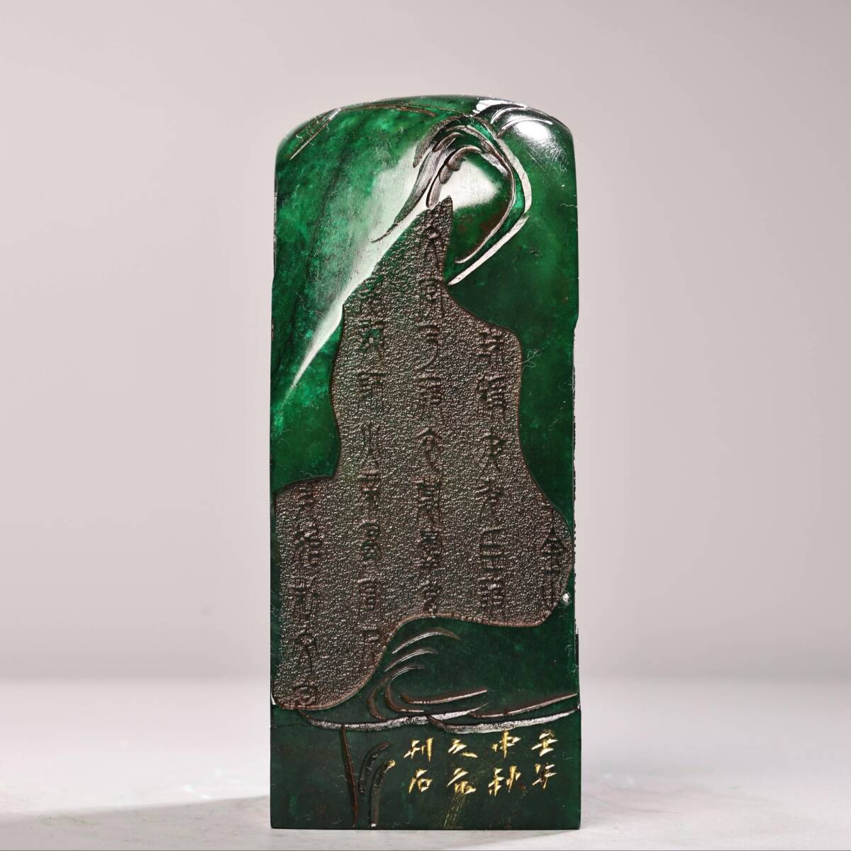 - 蔵友旧蔵出 寿山石 綠田黄石 細密彫 詩詞賦 印章 箱付 貴重品 稀少物品 置物 賞物 中国時代美術品