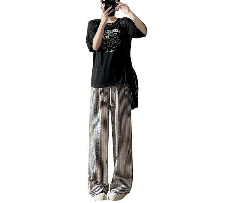 - 人気 新品 ワイドパンツ レディース タックワイドパンツ ストレートパンツ 春夏 夏 綿 ワイド スラックス ロング マキシ丈 ストライプ柄