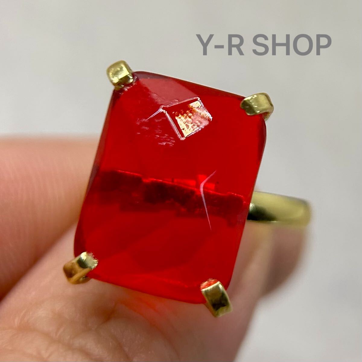 > 処分価格★フリーサイズ★ドロップみたいなレッドカラーストーンのシンプルリング★レディース指輪ゴールドアクセサリー新品宝石Y-RSHOP