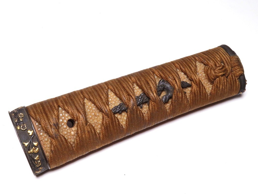 - 【10836】江戸〜明治時代 刀装具 赤銅地 草花象嵌 柄(初品・買取品)