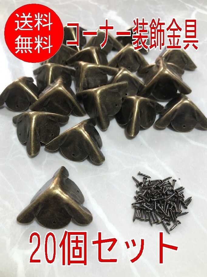 - 【20個セット】■コーナー装飾金具 CS-02■30×30×30mm アンティーク 三方面 プロテクター 3面 エッジガード