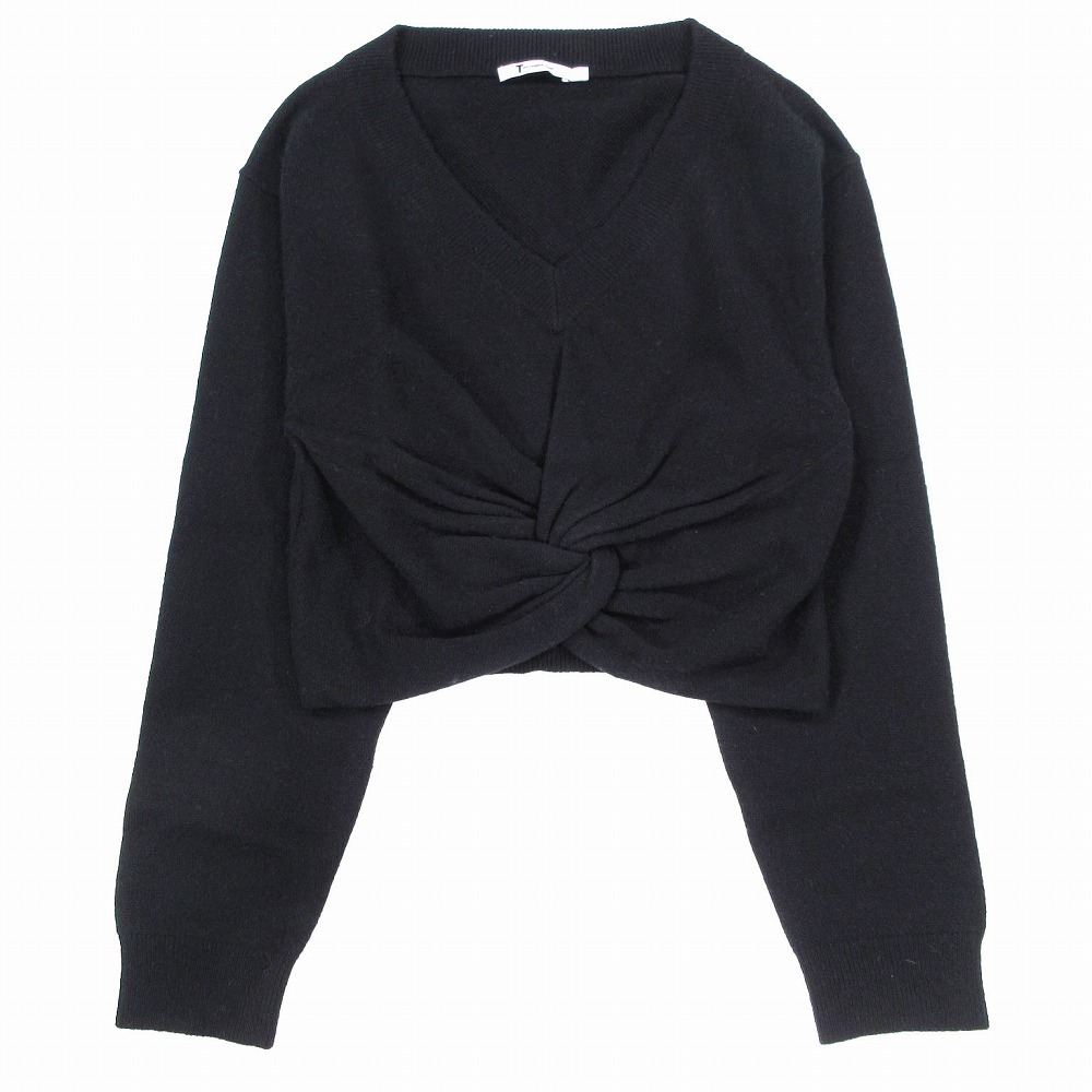 - T by Alexander Wang アレキサンダーワン クロップド ニット セーター Vネック 長袖 サイズS ブラック 黒 レディース 【中古】