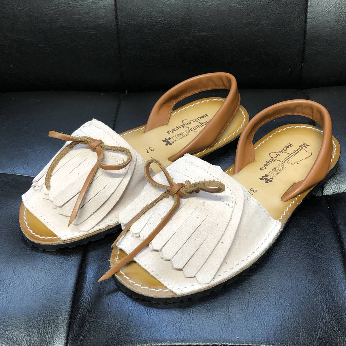 - WQ592●Menorquina :フリンジバックストラップレザーサンダル ●37● 薄いピンク メノルクイナ