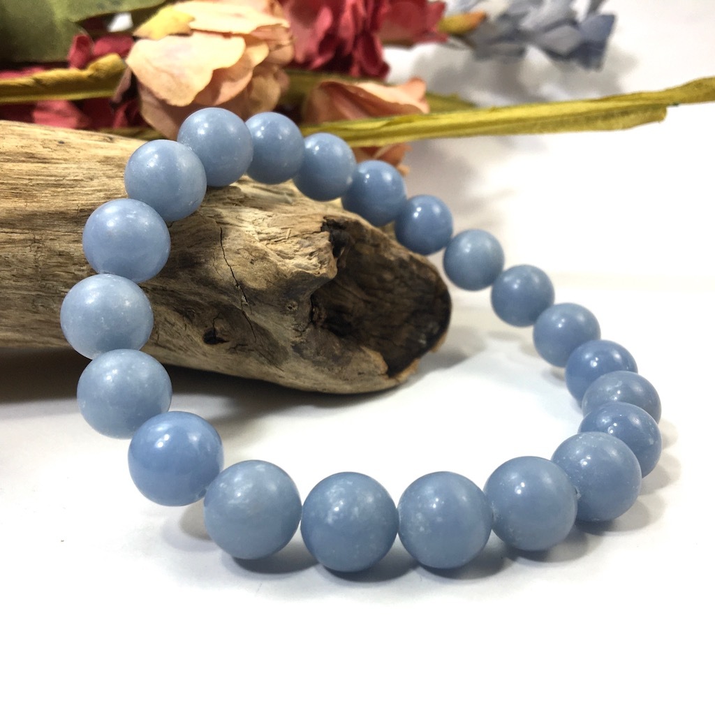 - エンジェライト パワーストーン ブレスレット 10mm 天然石ブレス シンプル 開運 浄化 数珠ブレス メンズ・レディース 男性 ☆
