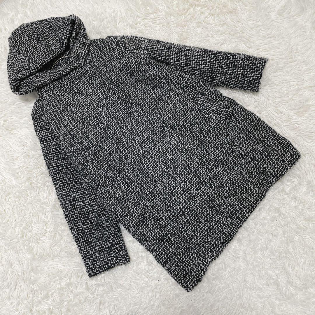 - GU (XL) 中綿ツイードコート フード ミドル丈 ミックスカラー ウール混