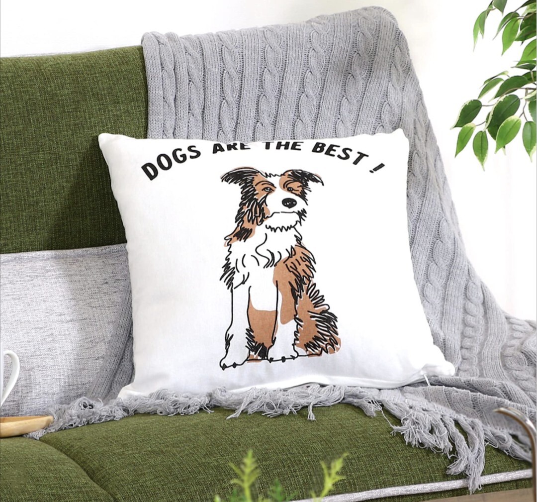 - BEST ARE DOGS イラスト 犬 綿100% ホワイト 45×45 クッションカバー 不二貿易