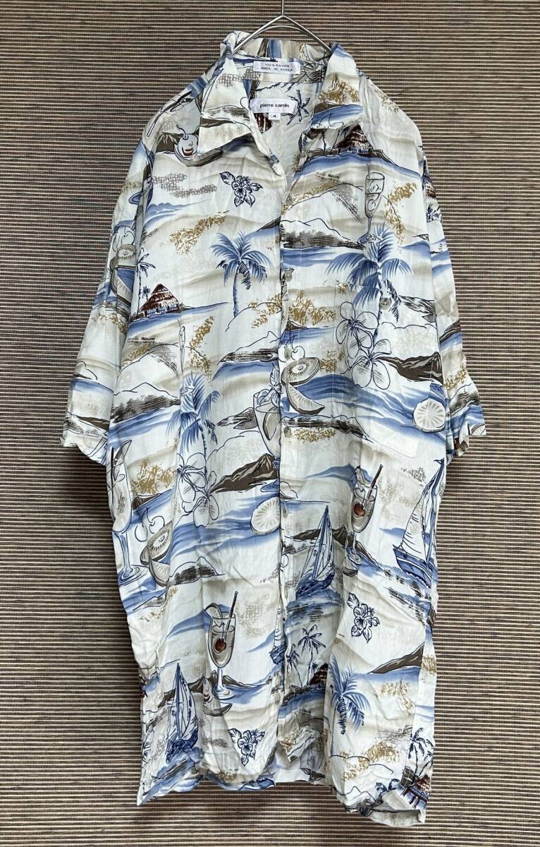 > アロハシャツ 総柄 レーヨン ベージュ カクテル ヤシの木 フルーツ*6古着 入手困難 激レア希少人気 ボタニカル ヨットサクランボ