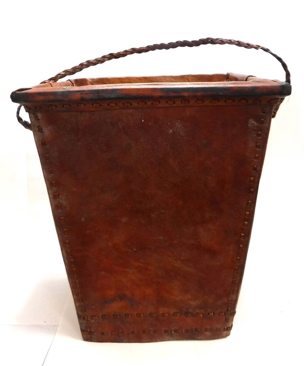 - M[宅100]4295 珍品 インド 本革 バケツ 花器 鉢カバー ドライフラワー レトロ アンティーク 状態悪し ジャンク品