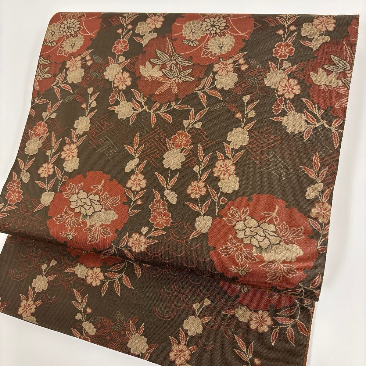 > 洒落袋帯 雪輪 花柄 上品な織出し 正絹 着物 W-3031